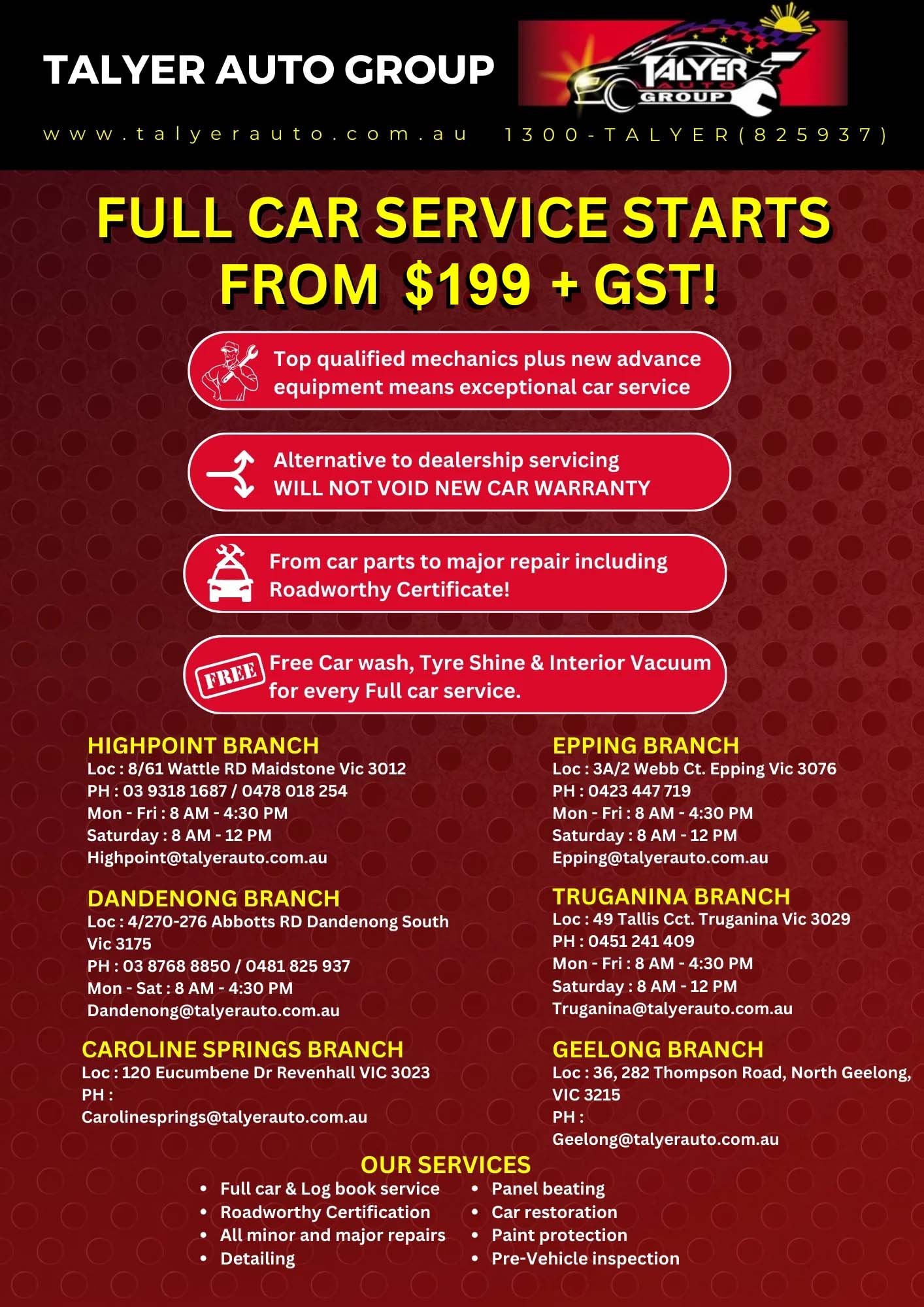 TalyerAuto is a Licensed Vehicle Tester of VICROADS under License No. 11336.